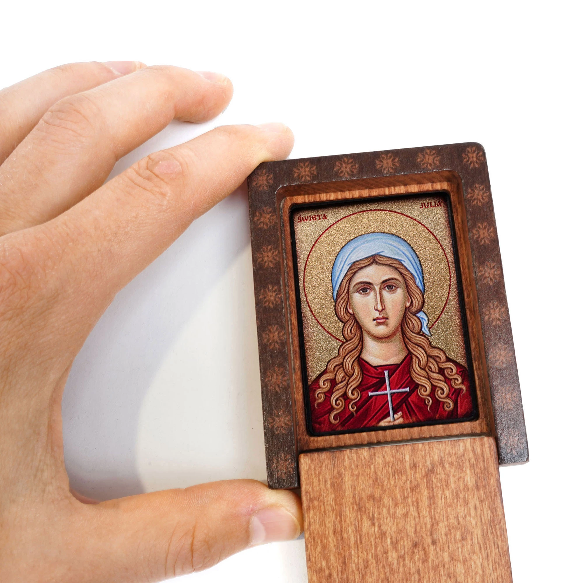 Ta katolicka ikona podróżna Świętej Julii to nie tylko przedmiot. To towarzysz – obecny, gdy milczysz. Gotowy, gdy potrzebujesz modlitwy. Zmieści się w dłoni, plecaku, schowku samochodu. Zawsze blisko – w chwilach codziennych i wyjątkowych.