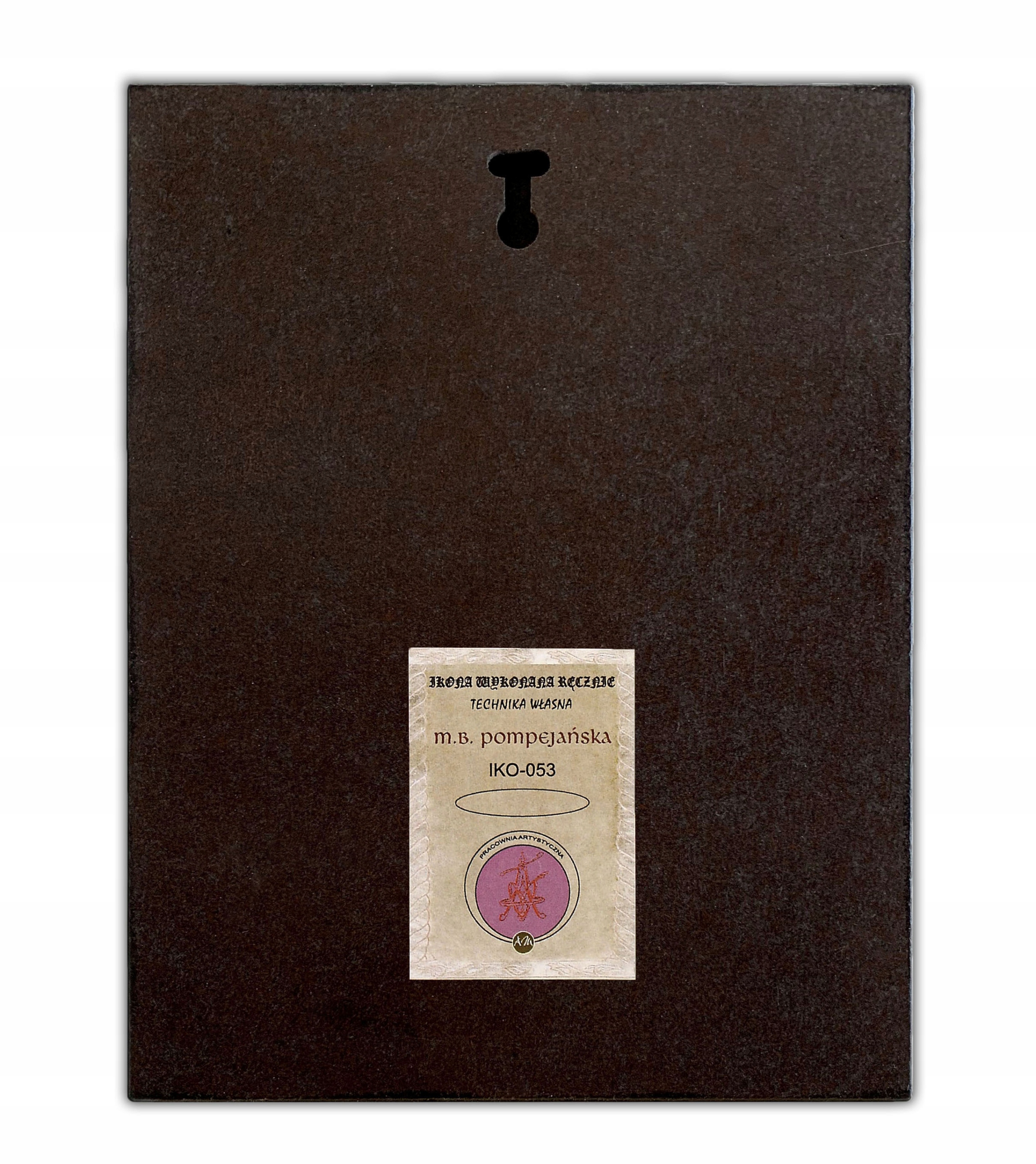 Dodatkowo do ikony Matki Boskiej Pompejańskiej dołączany jest certyfikat autentyczności, który potwierdza jakość Pracowni Artystycznej MAJK, w której została wykonana. Dodatek ten podkreśla wyjątkowość i oryginalność produktu.